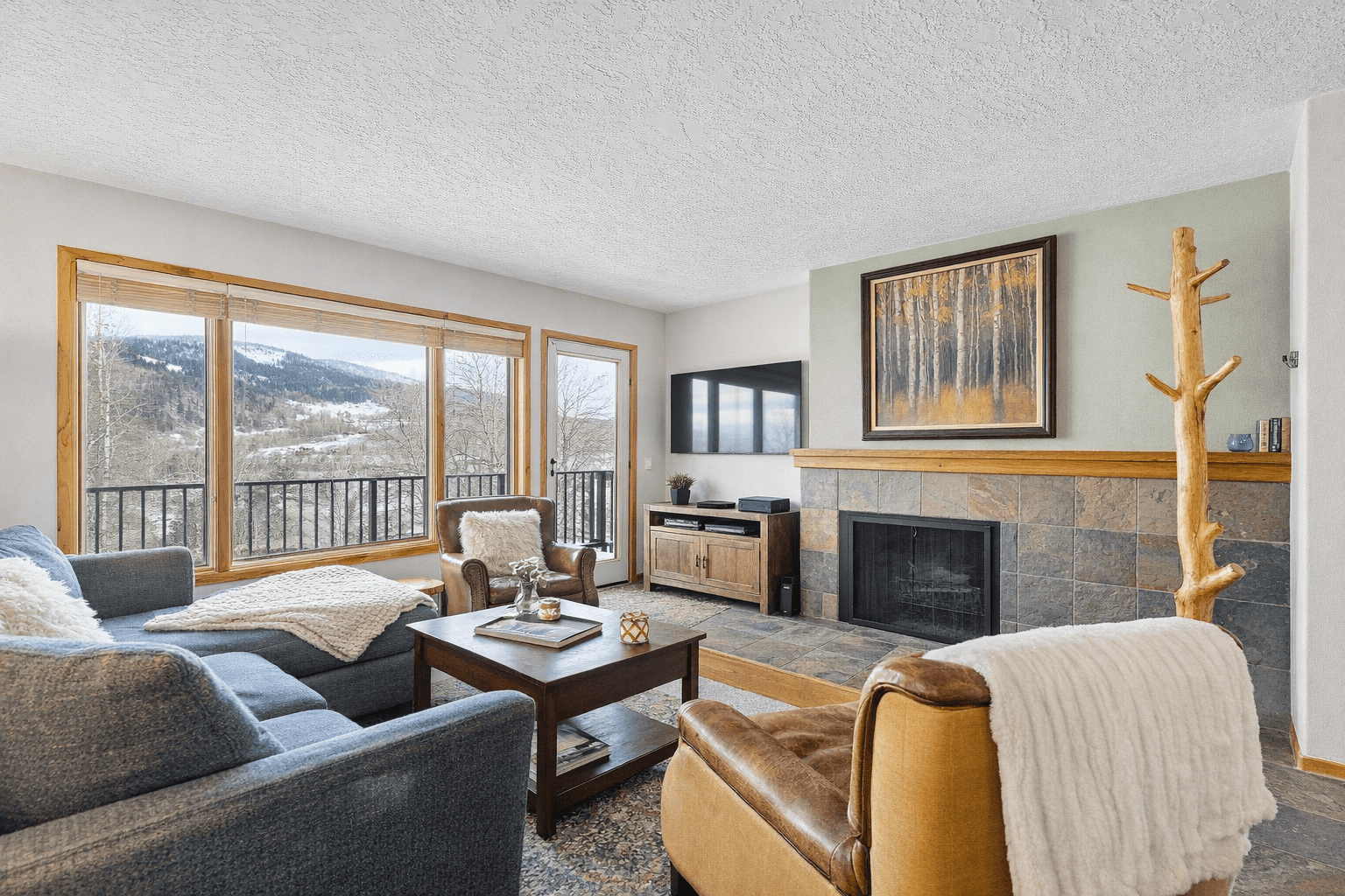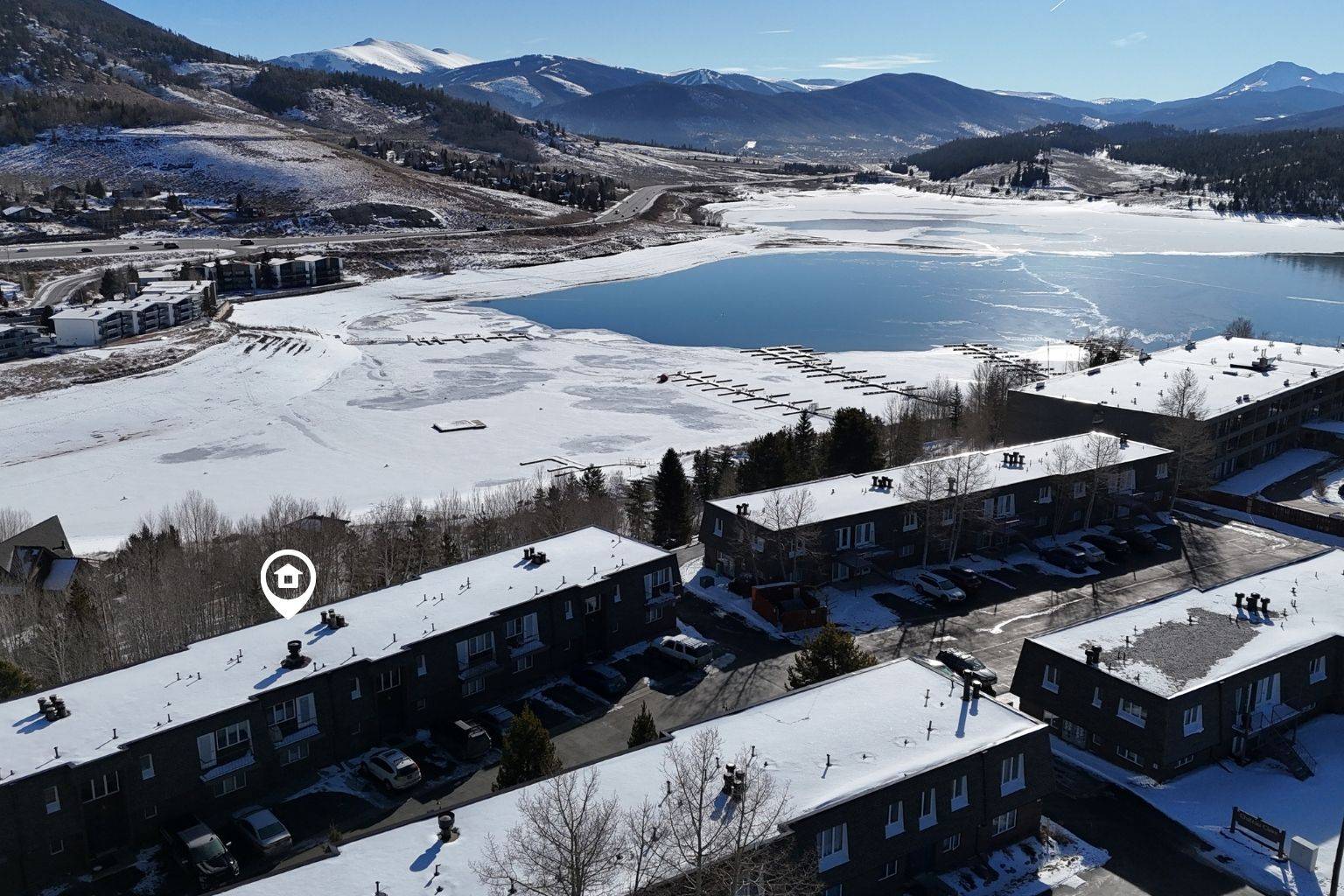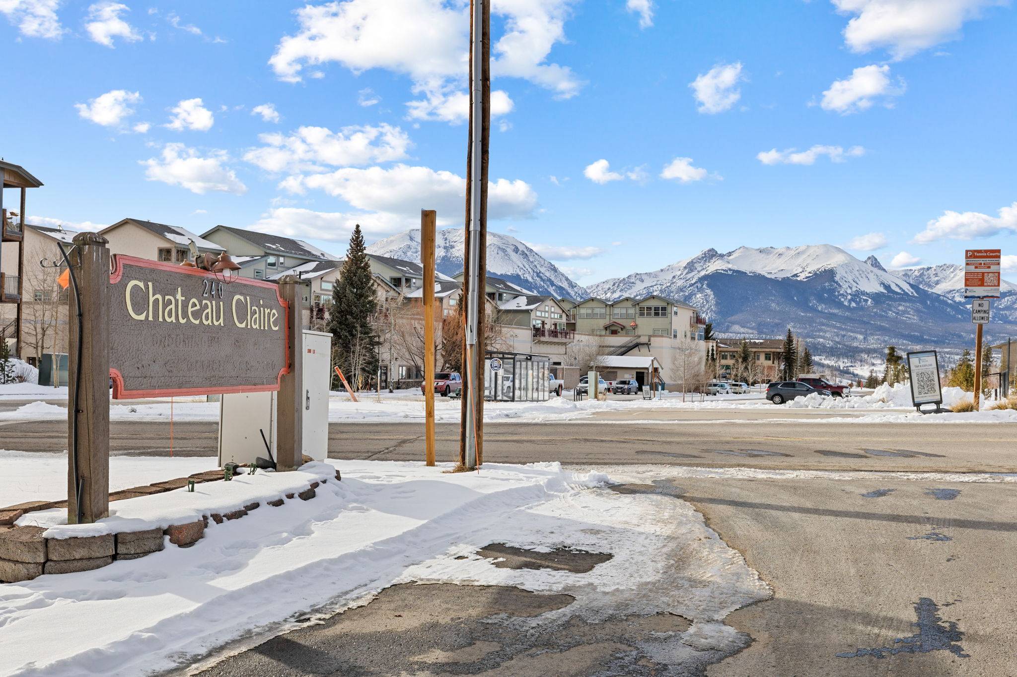 Experience top floor living in the heart of downtown Dillon at this 2 bedroom, 2 bath condo in the Chateau Claire complex. This south facing condo offers sweeping lake and mountain views, abundant natural light, and an open layout anchored by a cozy wood-burning fireplace. Step onto your balcony overlooking Lake Dillon, or head out to the adjacent bike path, marina, and amphitheater in the summer. In the winter, take the free bus to any of the 5 world class ski resorts. This is a rare opportunity for a rentable mountain retreat at a good value. 240 E La Bonte