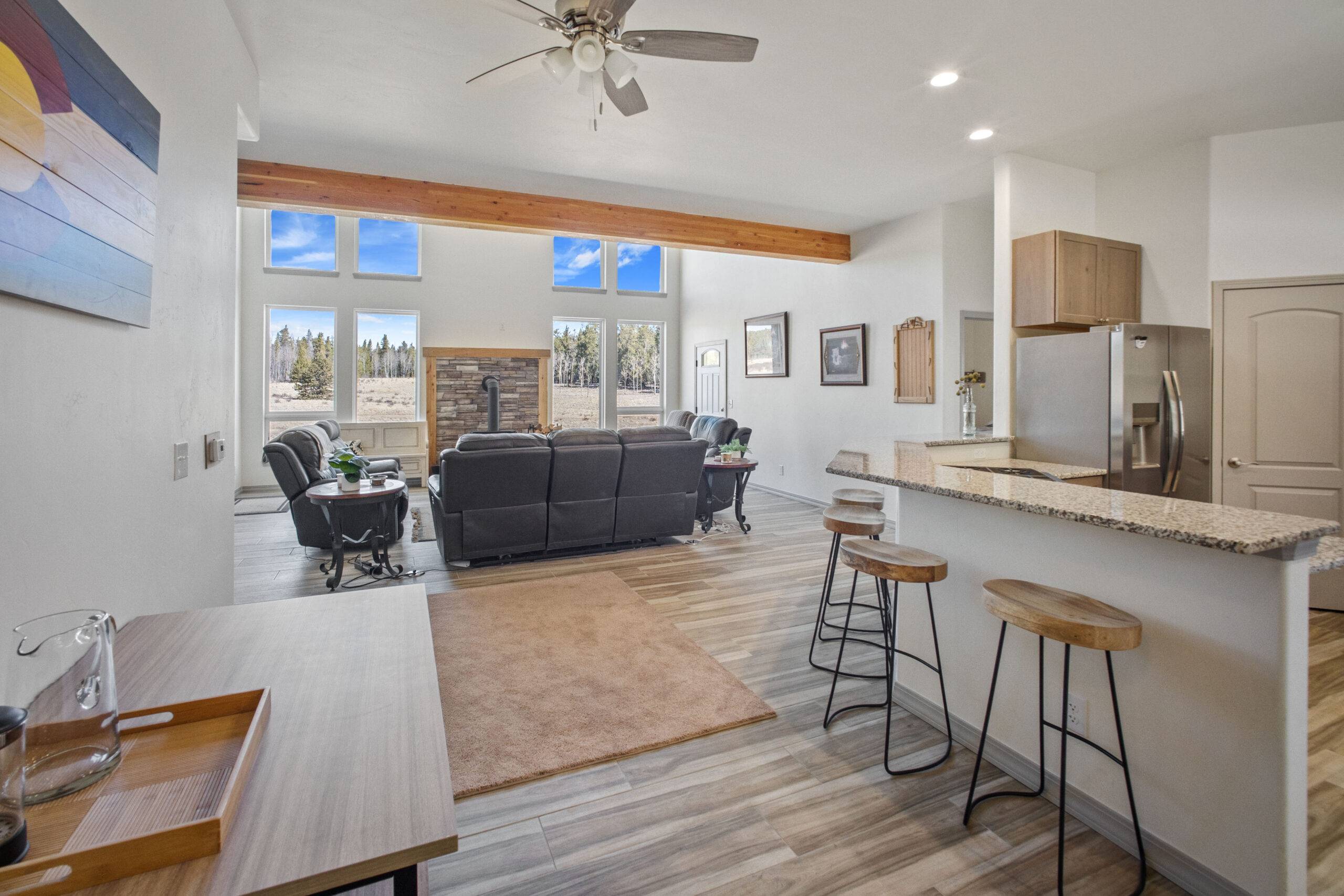 Located in Fairplay’s sought-after Foxtail Pines neighborhood, this 4-bedroom, 3-bath home offers 2,624 sq ft of thoughtfully designed living space on 2.5 acres of quiet, wooded land. The open floor plan is filled with natural light and features tall ceilings, a welcoming wood-burning stove, and a spacious primary suite with a five-piece bath and soaking tub. A wrap-around deck provides the perfect spot to take in the surrounding nature and expansive night skies. With convenient access to skiing, hiking, and fishing, this property offers a balanced blend of comfort, privacy, and mountain lifestyle.